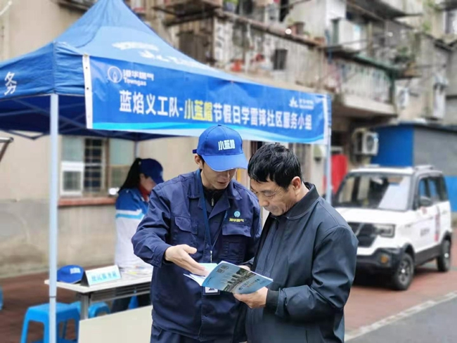 當(dāng)天一大早,“小藍(lán)帽”們就在小區(qū)內(nèi)搭設(shè)起便民服務(wù)站,積極為過往的小區(qū)居民提供灶具免費(fèi)維修、燃?xì)馐褂脝栴}解答等服務(wù),現(xiàn)場服務(wù)居民50余次。同時(shí),他們還通過擺放安全展示牌、發(fā)放《燃?xì)獍踩脷馐謨浴返刃麄餍问?,進(jìn)一步增強(qiáng)小區(qū)居民安全用氣意識。