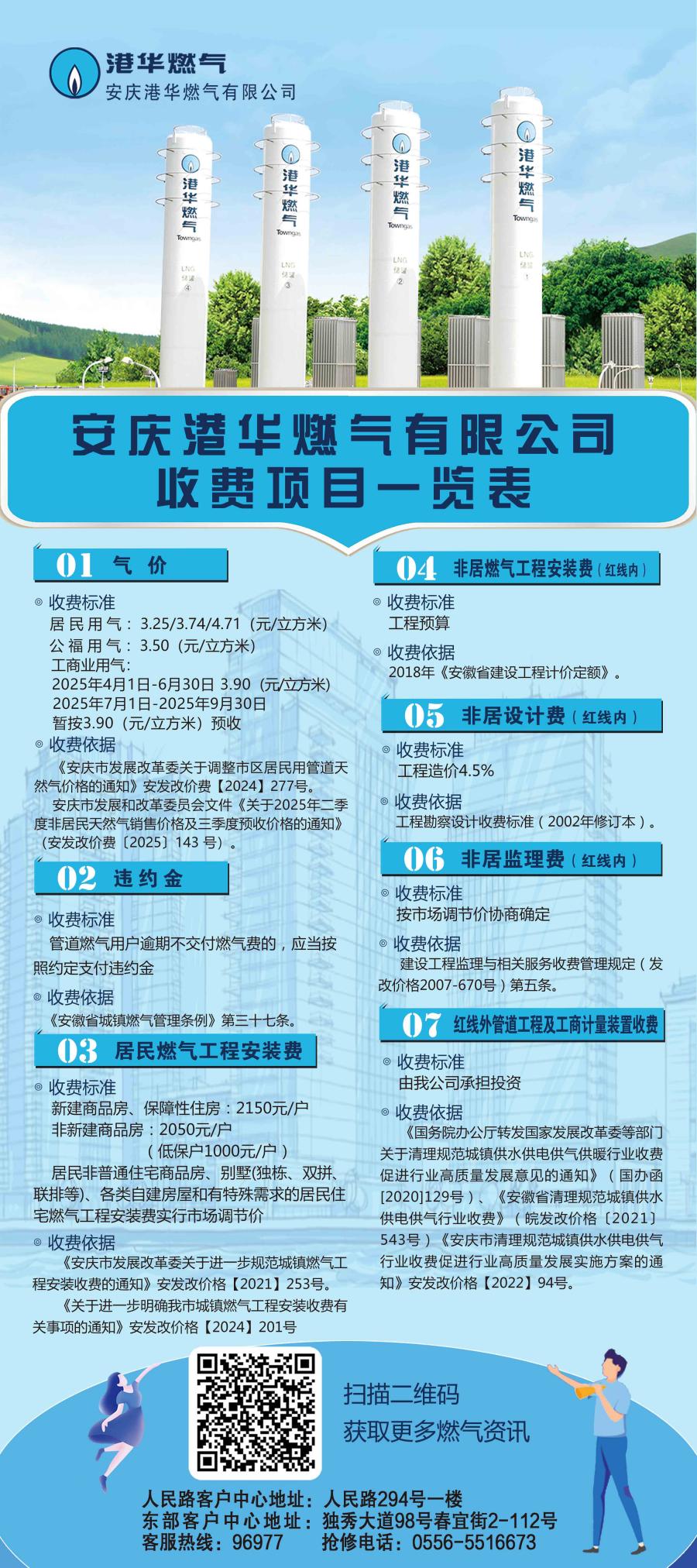 安慶港華燃?xì)庥邢薰臼召M(fèi)項(xiàng)目一覽表(2025)