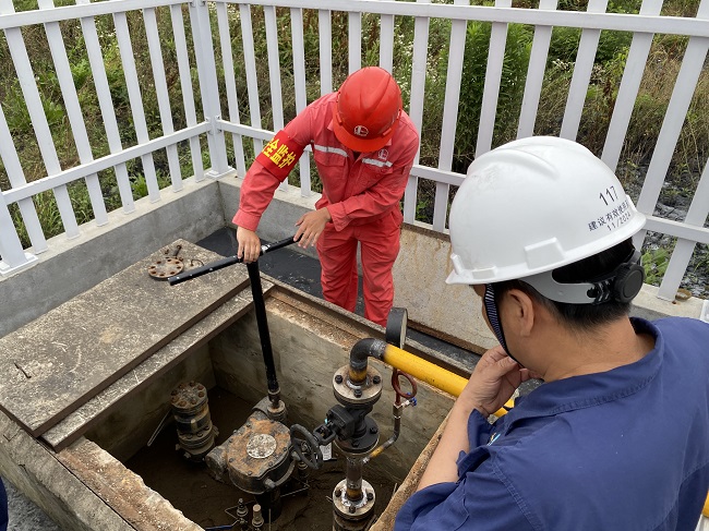 “山口高壓停輸作業(yè)區(qū)域燃?xì)馓铰┸嚨谌螜z測結(jié)果無異常,可開啟管線4#閥門”,伴隨著來自安慶港華調(diào)度中心的指令,高壓管線與北部新城場站連接的最后一道閥門緩緩開啟,安慶高新區(qū)山口片區(qū)高壓燃?xì)廨斉涔こ谈邏汗芫€順利完成接駁。