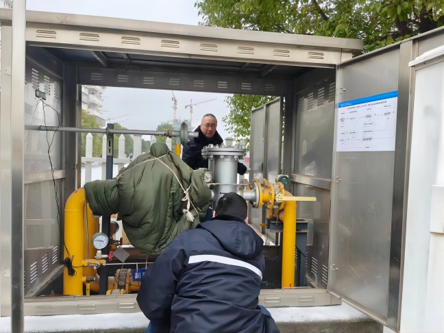 保障輸配勤維護(hù)。為保障低溫雨雪天氣下全市生產(chǎn)生活穩(wěn)定用氣,場(chǎng)站運(yùn)行工高頻次檢查各重要設(shè)備運(yùn)行情況,細(xì)致排查安全問(wèn)題,一絲不茍確保關(guān)鍵環(huán)節(jié)處于良好運(yùn)行狀態(tài);巡線探漏人員頂風(fēng)冒雪,重點(diǎn)加大了人員密集區(qū)域及民生保障關(guān)鍵點(diǎn)的燃?xì)夤芫W(wǎng)巡查探漏,并對(duì)易受低溫影響的管道、閥井、調(diào)壓設(shè)備及時(shí)采取包裹棉被、排水等防凍措施。
